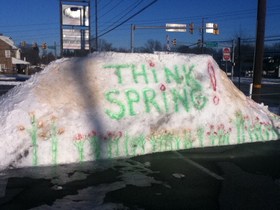 So at the Rita's near my house, there's a giant snowpile. Someone got creative with it...